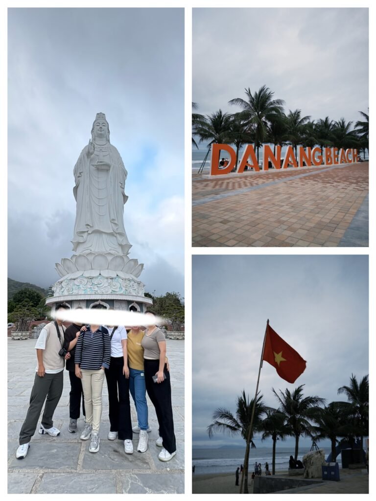After that, we went to the marina and beach for some photos, then to Son Tra Peninsula. The guide said Malaysian tourists love “long-leg” photos and promised he knew the best poses… but the results were so bad we couldn’t post them anywhere 😂