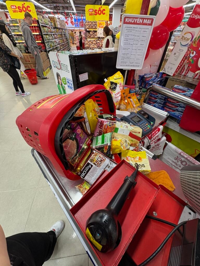 饭后导游带我们去了当地人常逛的超市,我们买了零食、泡面和腰果等。